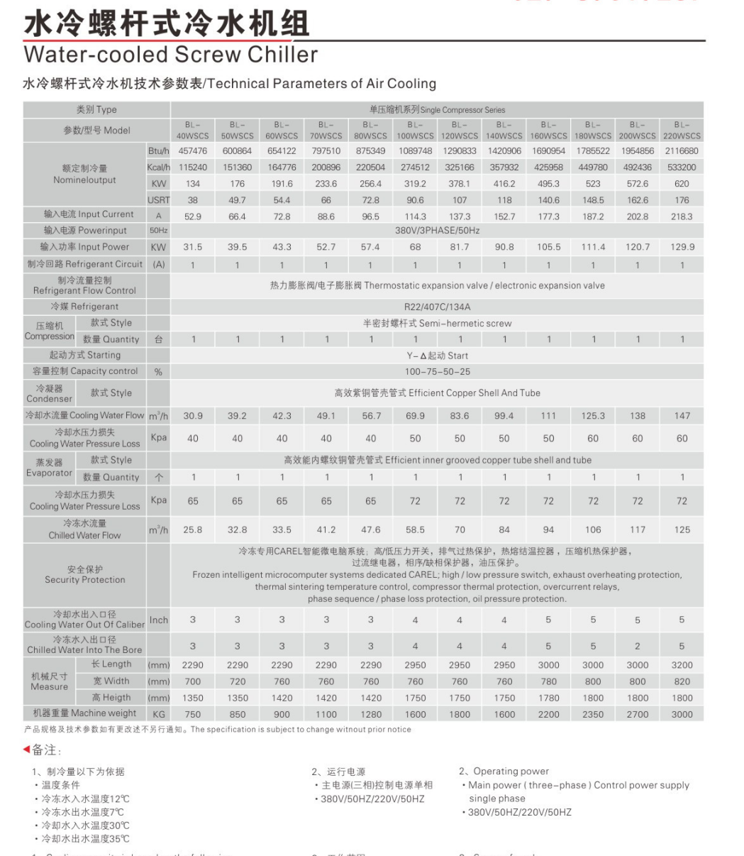 采用比泽尔、莱富康、复盛、汉钟半封闭螺杆压缩机。